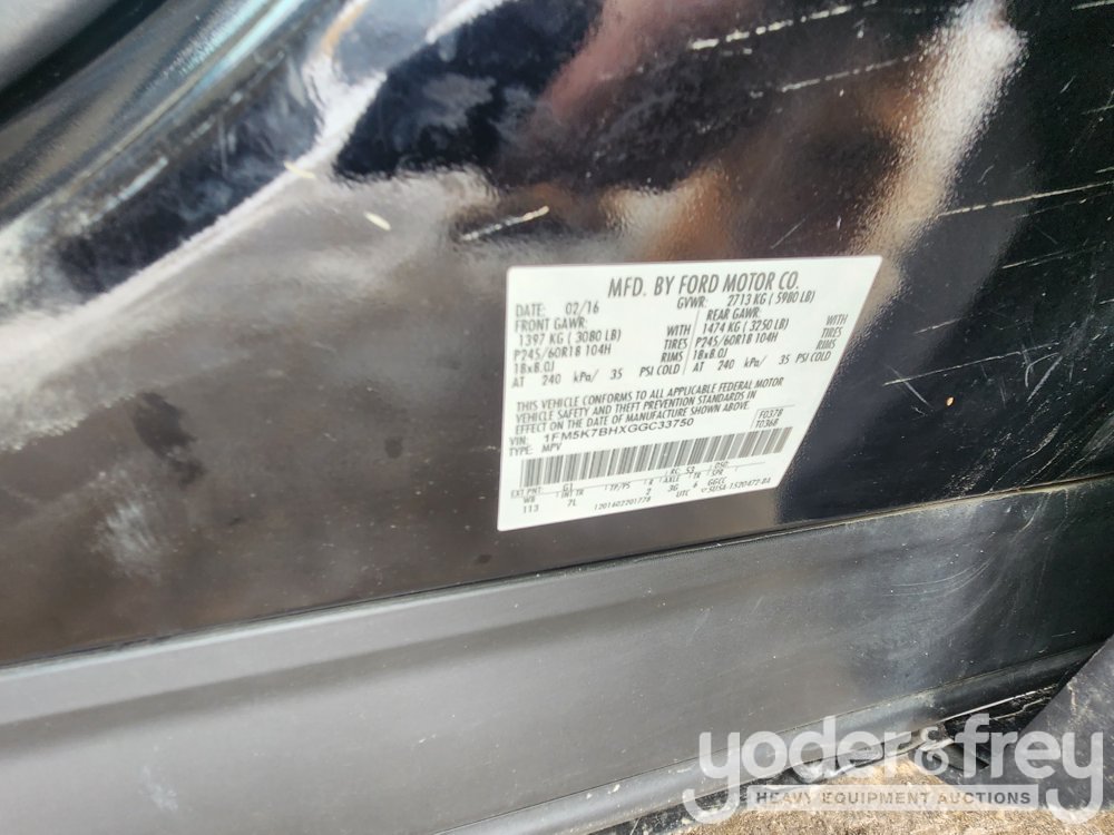 2016 Ford Explorer 2WD SUV, 4 Cylinders H 2.3L FI Turbo DOHC 140 CID, Automatic, A/C, Third Row Seats (Meter Reading: 124820 Miles) - 1FM5K7BHXGGC33750