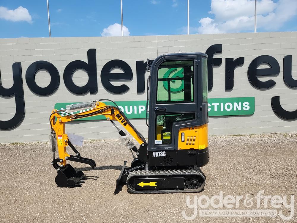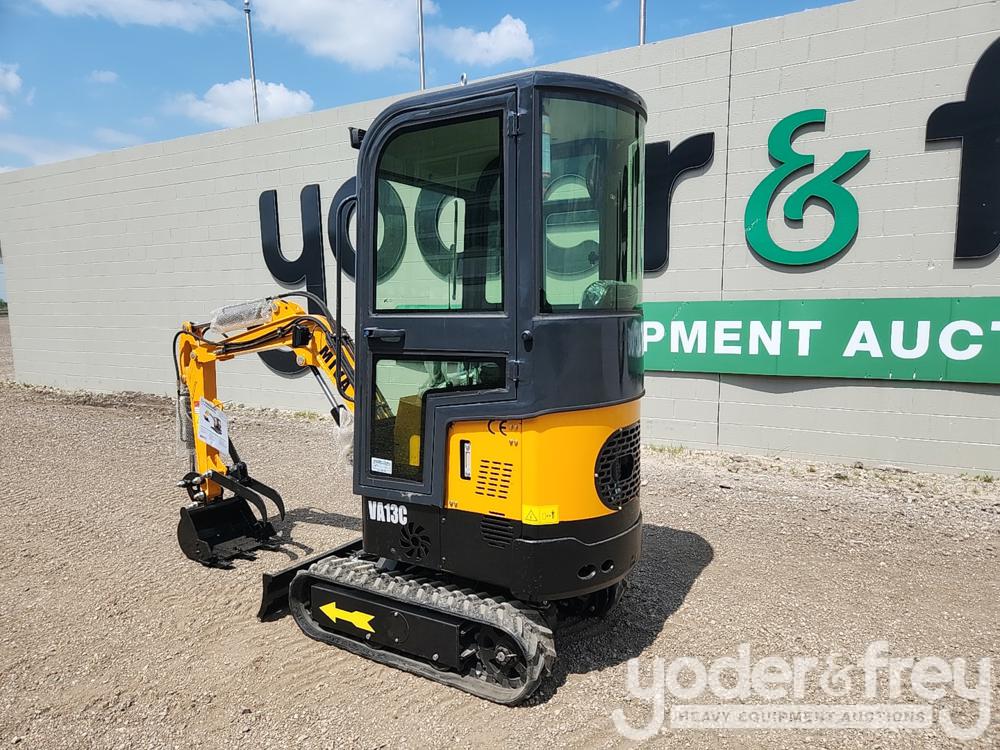 Unused 2023 Miva VA13C Mini Excavator, Cab, Rubber Tracks, 16" Digging Bucket, Piped, Backfill Blade, Manual Thumb, Briggs & Stratton Engine (1 Hours) - V*******5
