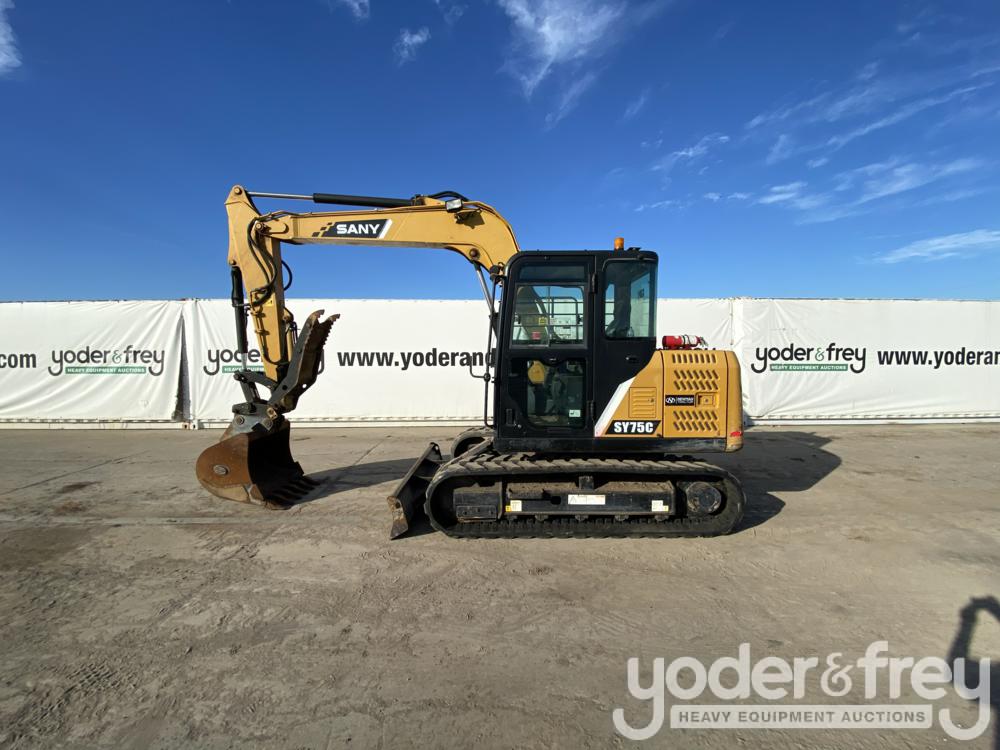 2018 Sany SY75C Excavator, Rubber Tracks, Blade, Aux Hydraulics, QC, 36" Bucket, Hydraulic Thumb - SY007DBJN0728