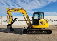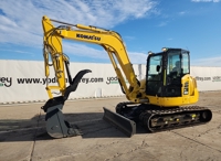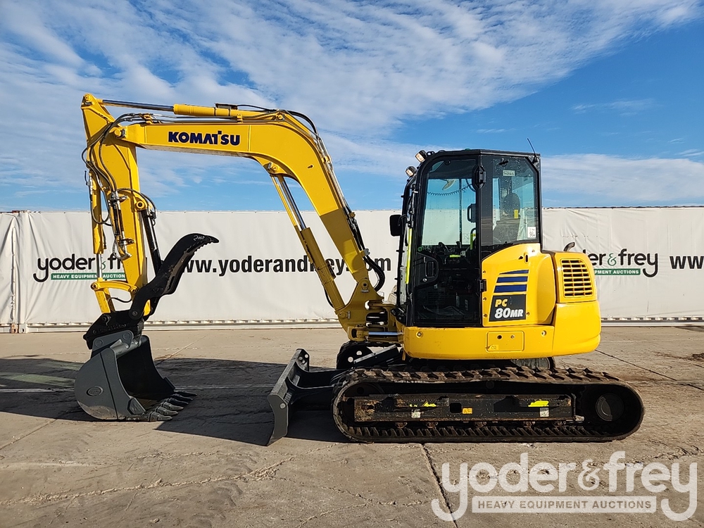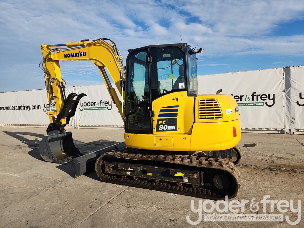 2021 Komatsu PC80MR-5E0 Excavator, A/C, Rubber Tracks, Blade, Swing Boom, CV, Aux Hydraulics, QC, Bucket, Hydraulic Thumb (995 Hours) - KMTPC277AMUF70462