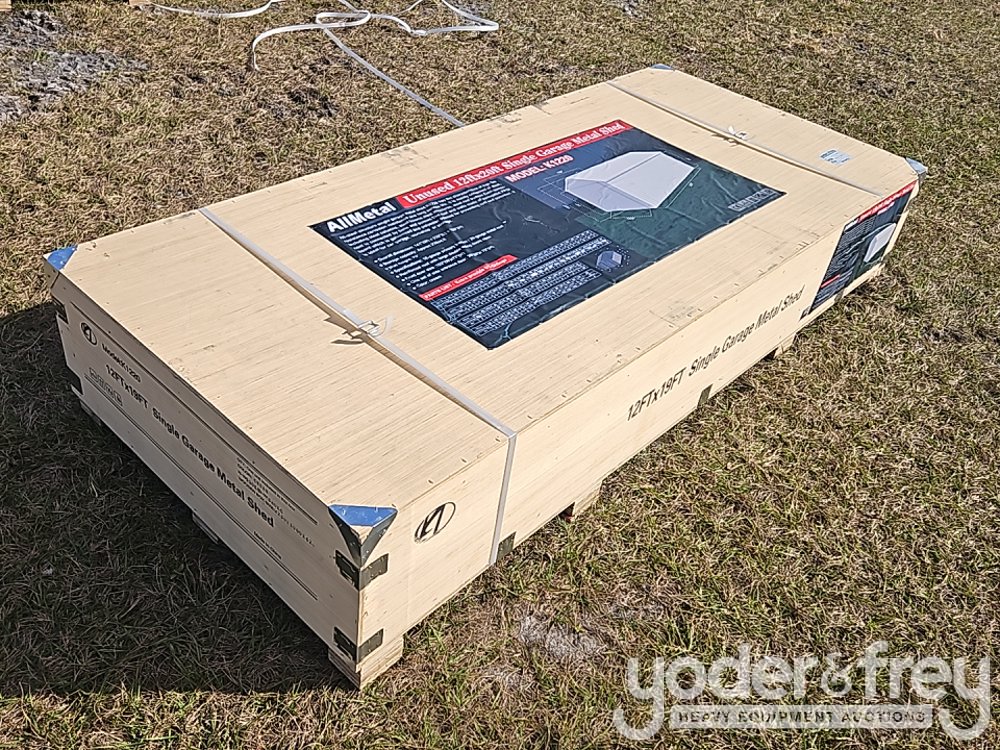 Unused Allmetal K1220 12’x 19’ Metal Garage, Overall Dimension:W12’ *L20’ * H9’, Storage Capacity: Approx. 230sq.’, Wall Height: 79", Specifications:16-Gauge Primary Frames, 29-Gauge Metal Roof, Roof With Reinforcement, With Large Double Swing Doors - A********1