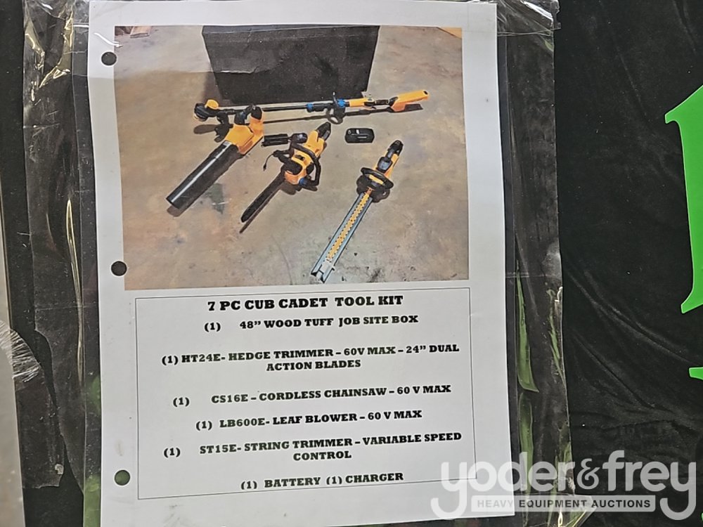 Wood Tuff Tow 48" Box---7 Pc Cub Cadet Tool Kit-, Hedge Trimmer, Cordless Chainsaw, Leaf Blower, String Trimmer, Battery Charger - 5*******4