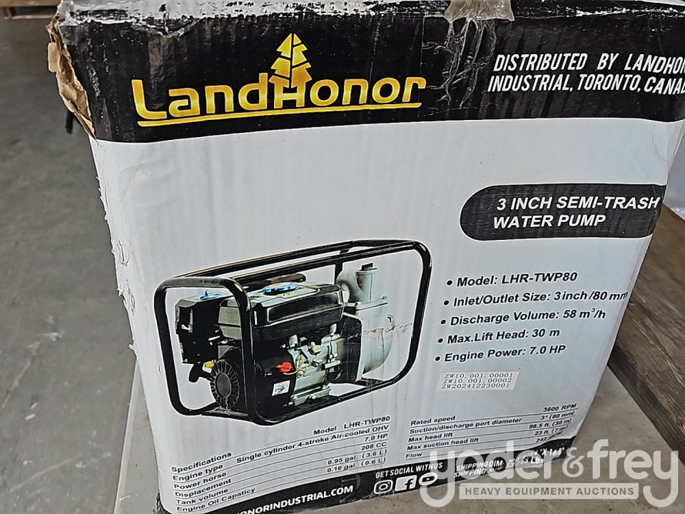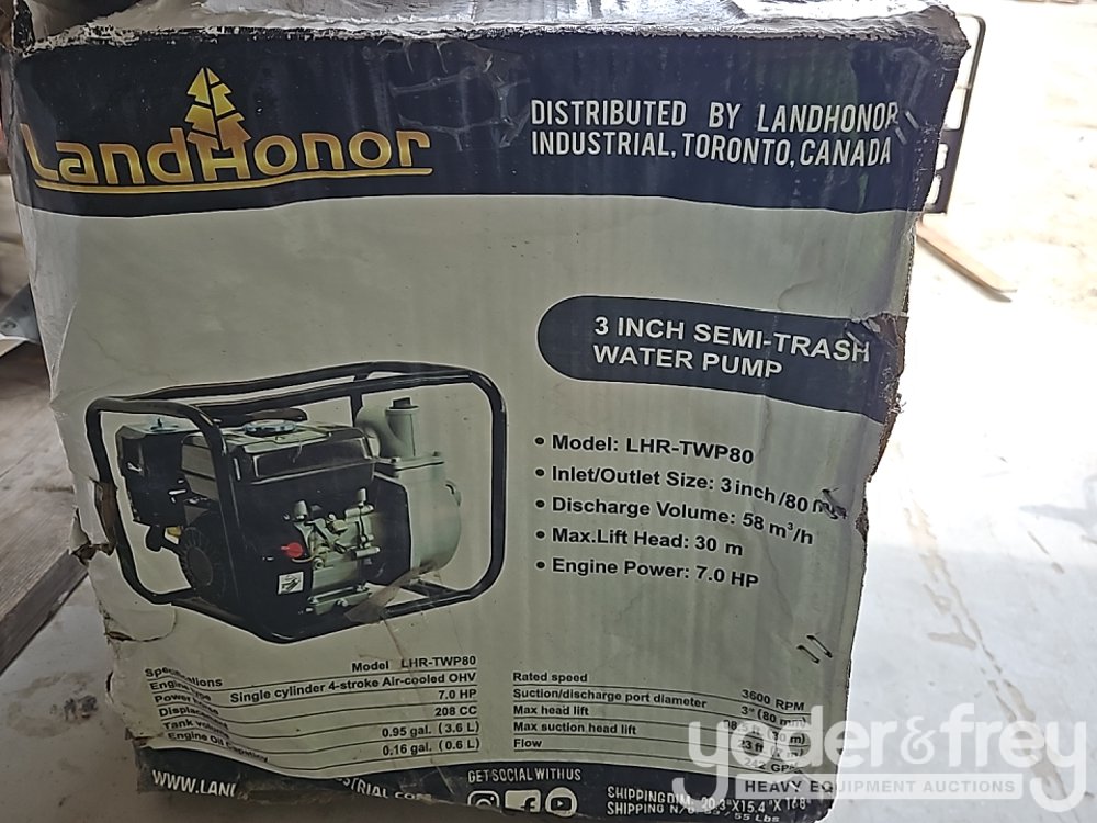Unused Landhoner LHR-TWP80 3" Semi-Trash Water Pump, Gasoline Engine - 1******5