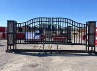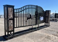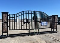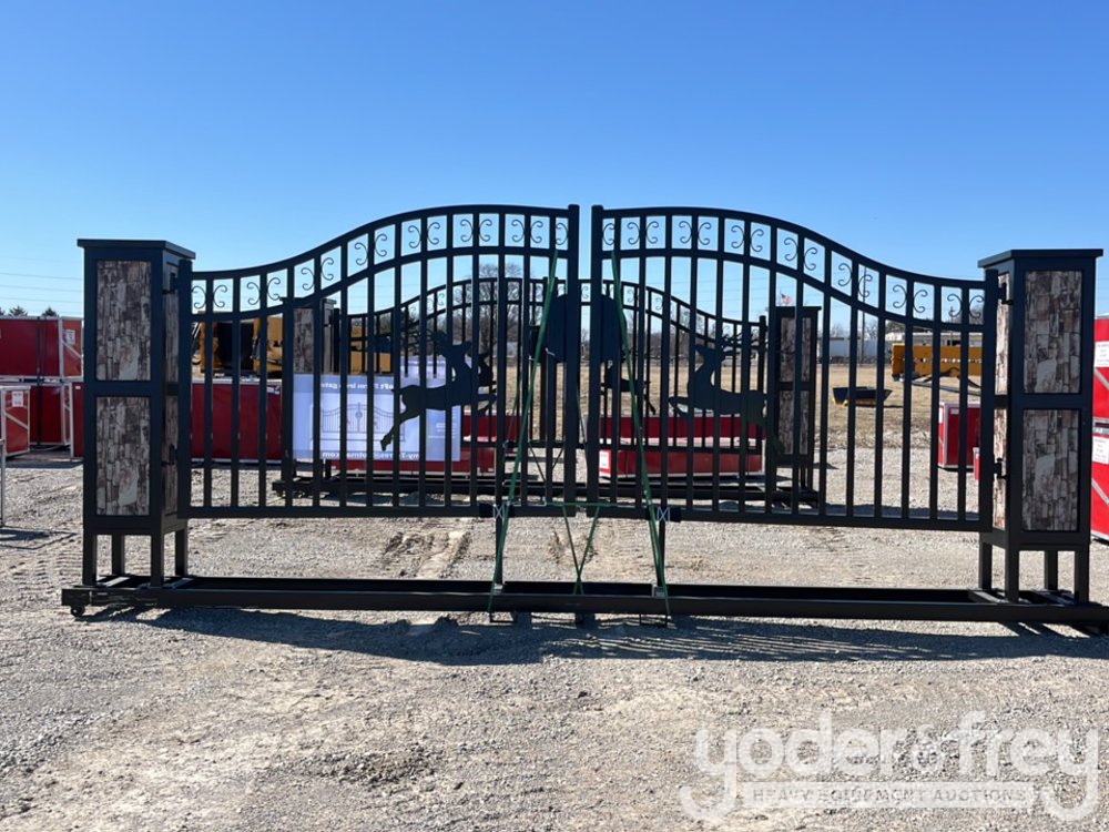 LOT # 0679 -- Unused 2025 20' Farm Iron Gate, Double Arc c/w Deer Design, Gate Pier