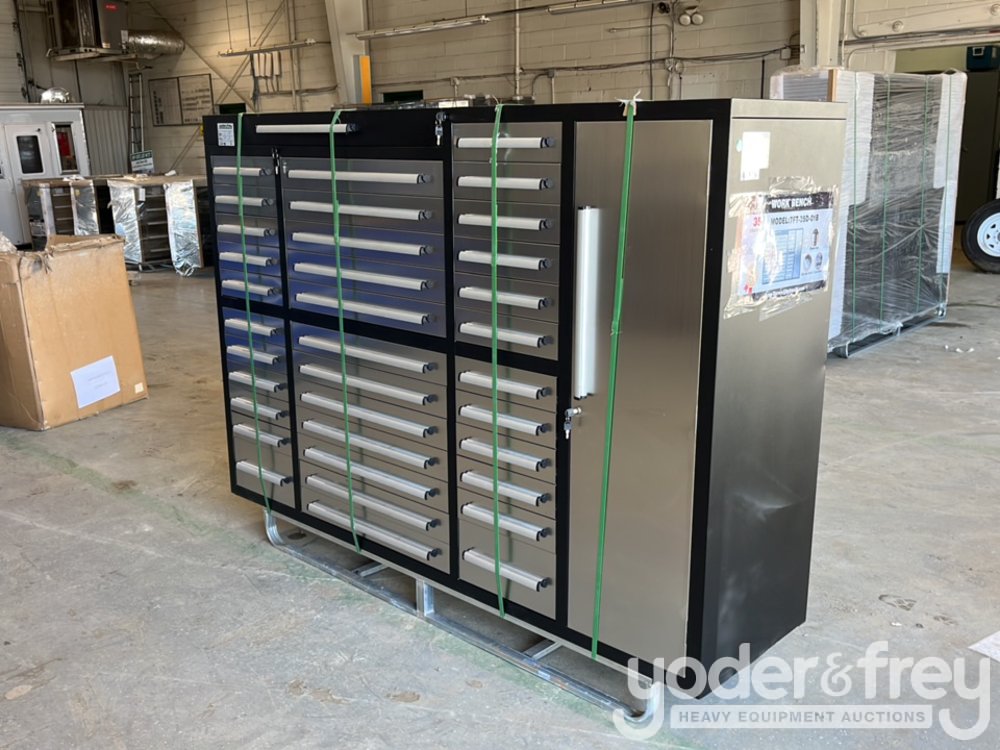 Unused 7' Work Bench c/w 35 Drawers, 1 Cabinets, Lock, Anti-Slip Inners, 3 Rail Stainless Steel - 1******7