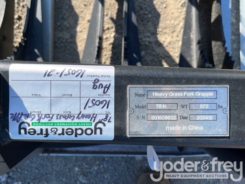 Unused 2025 78" Heavy Grass Fork Grapple to suit Skidsteer - 1******1
