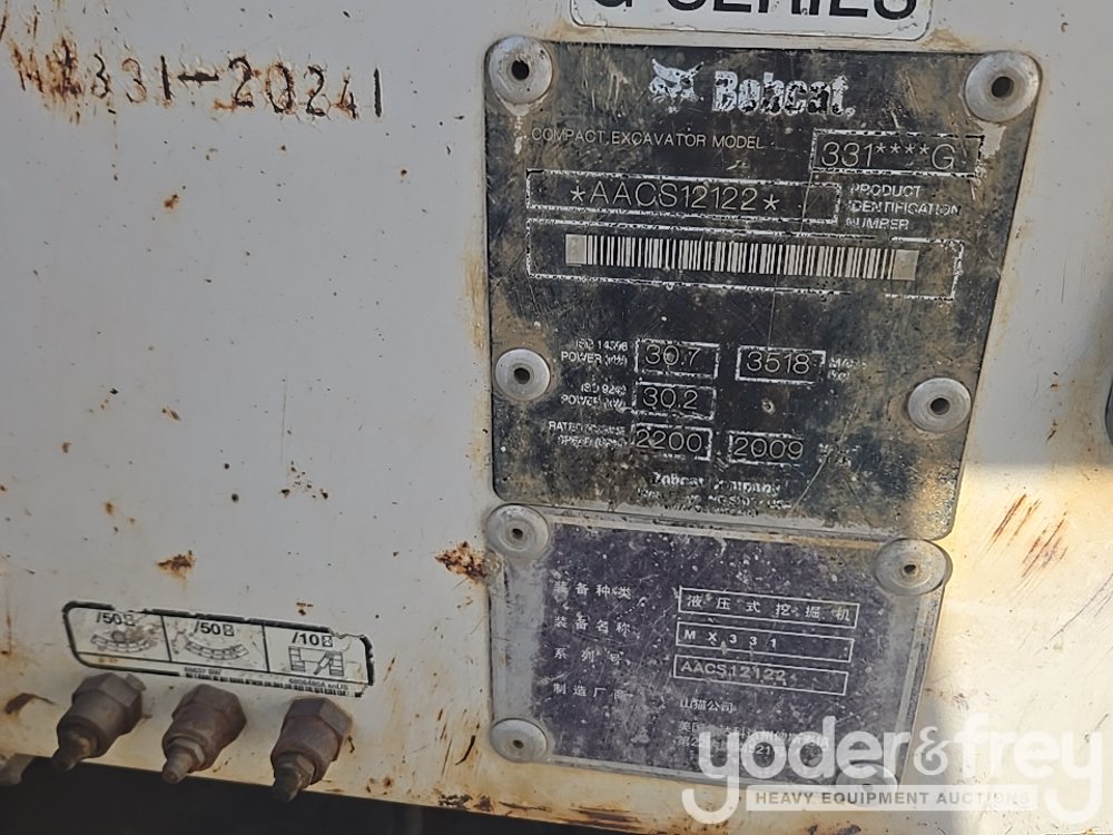 Bobcat 331G Excavator, Cab, Rubber Block Pads, Blade, Swing Boom, Aux Hydraulics, 24" Bucket - AACS12122