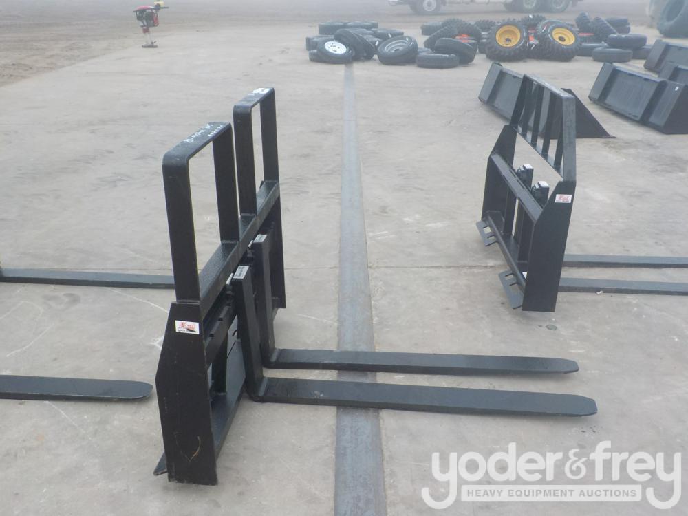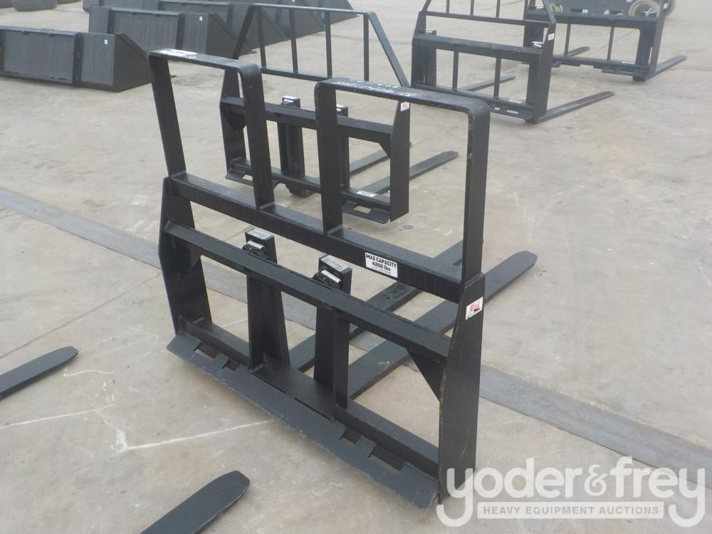 Unused 48" Heavy Duty Step-thru Pallet Fork Attachment, 4,200lbs capacity, to suit Skid Steer/Tractor - 1******8