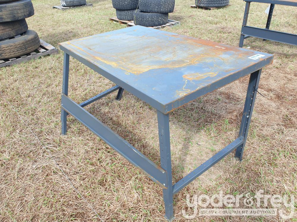 LOT # 3581E -- Steel Shop Table w/ Adjustable Legs, 34x60