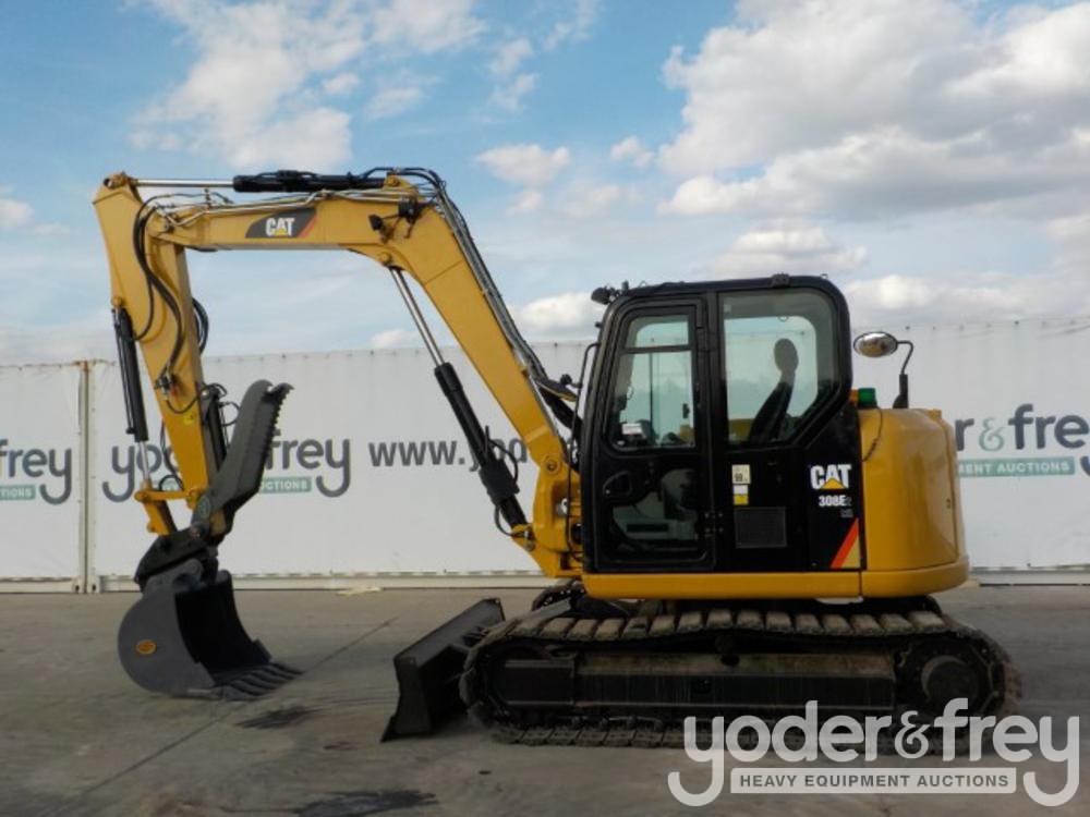 2015 Caterpillar 308E2 CR Hydraulic Excavator c/w Cab, 18" Block Pads, Backfill Blade, CV, Offset, QH, Piped, Aux. Piping, A/C, Hydraulic Thumb (3,398 Hours) - C***************8