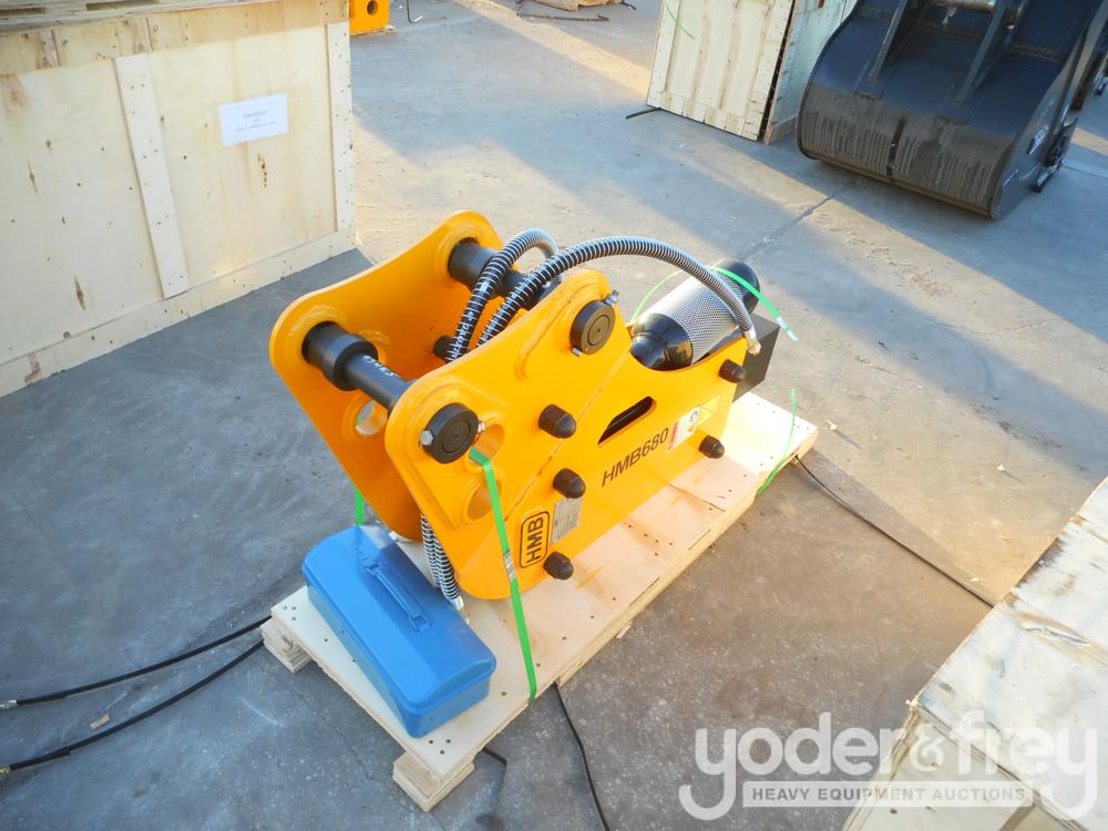 LOT # 0628 -- Unused HMB680 Hydraulic Breaker Hammer to suit Excavator 5-7 Tons, One Chisel Point, Two Hoses, One Set of Nitrogen Charging kit,one nitrogen bottles and pressure gauge