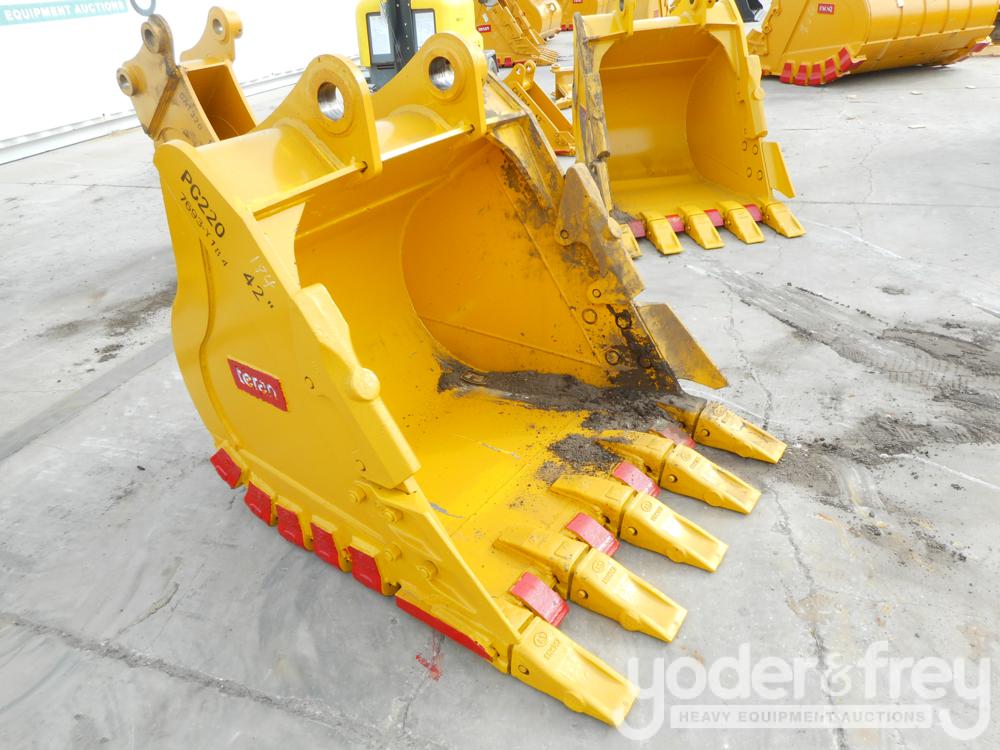 LOT # 2434 -- Unused Teran 42" HD Bucket 80mm Pin to suit Komatsu PC200, PC210, PC220, with Side Cutters, Side Protectors, Heel Shrouds, Lip Protectors, Reinforcement Plates, 5HD Tips
