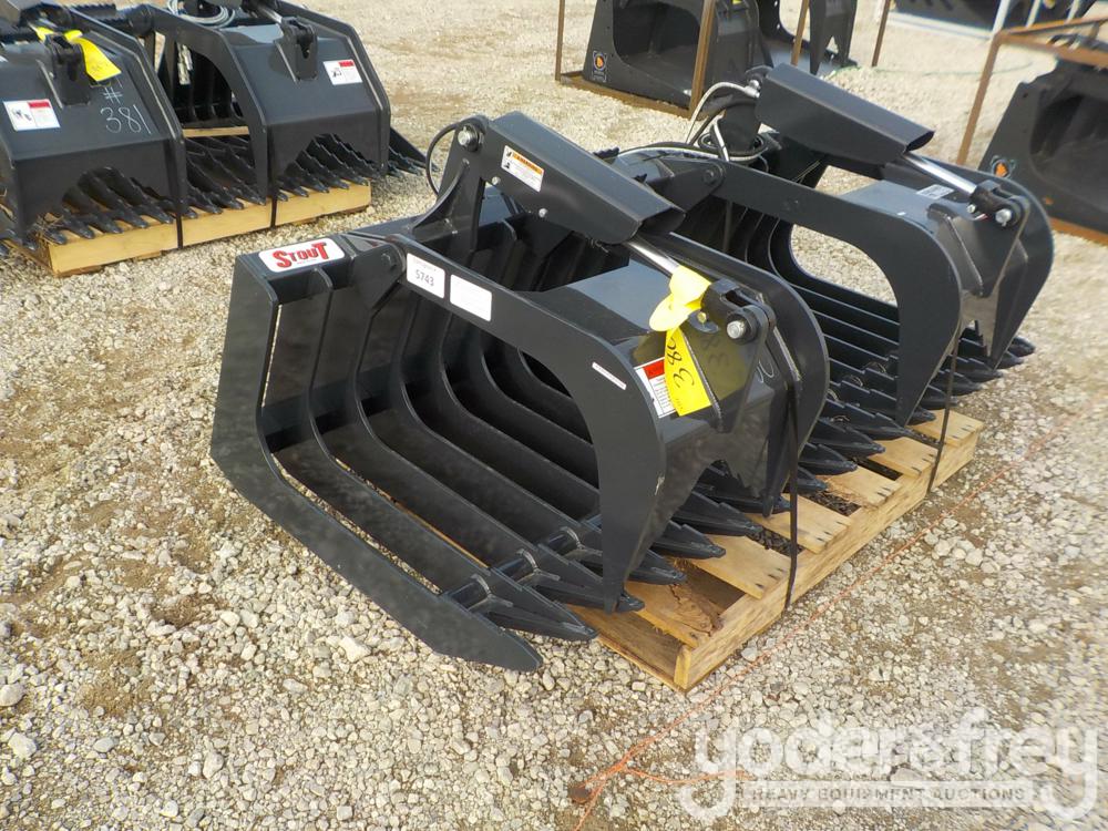 Unused Stout HD72-4 Grapple Brush to suit Skidsteer, Close Time c/w Skidsteer Quick Attach - 5*****1