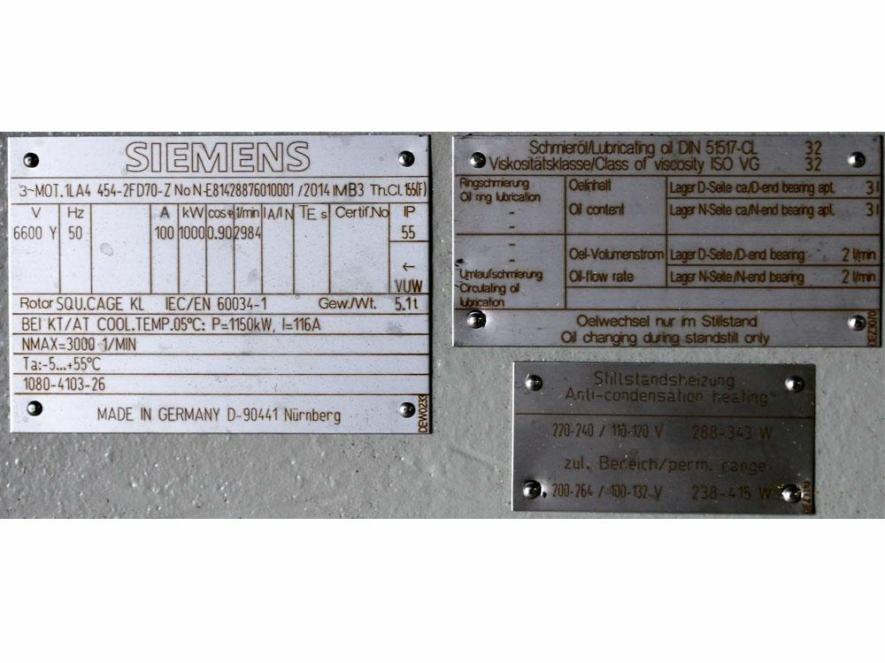 Unused Siemens/ Furnas/Mez/ Loher Electric Motor 1000kW 6600V 50Hz - 1*************Z