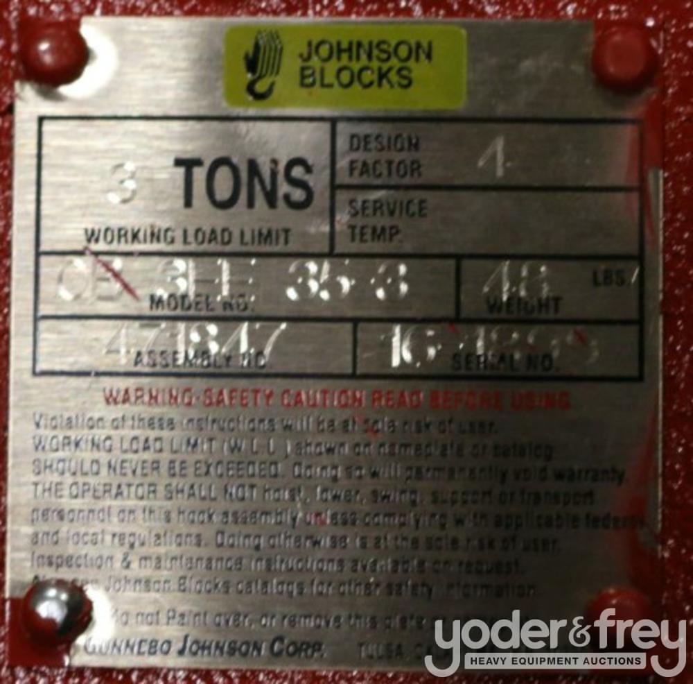Unused Johnson Blocks 3 Ton Hook w/Ball 7/16" Wire Rope - 0*********3