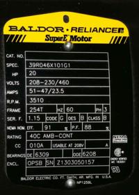 Unused ABB - Baldor Electric Motor 20hp 208-230/460v 60Hz - 8******6