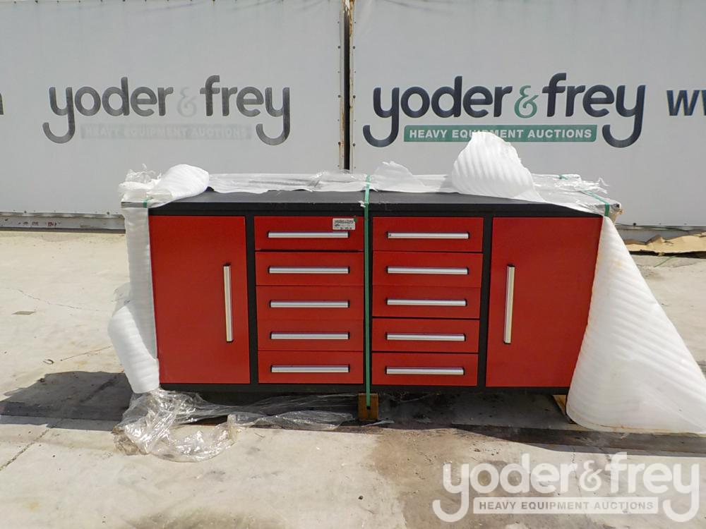 Unused Steelman 7' Work Bench c/w 10 Drawers, 2 Cabinets, 87" x 23" x 39" (Red) - 1*********5