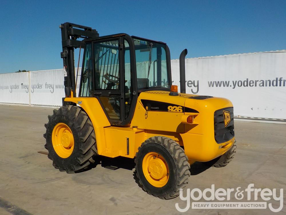 2003 JCB 926 4WD Rough Terrain Forklift c/w Cab, 3 Stage Mast, 40" Forks, Front Tire Size 16.5/85-24, Rear Tire Size 10.5/80-18 - SLP926043E0823683