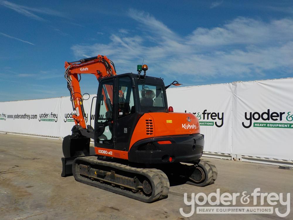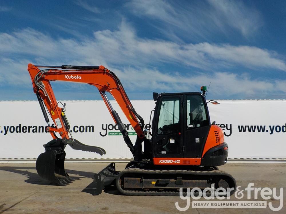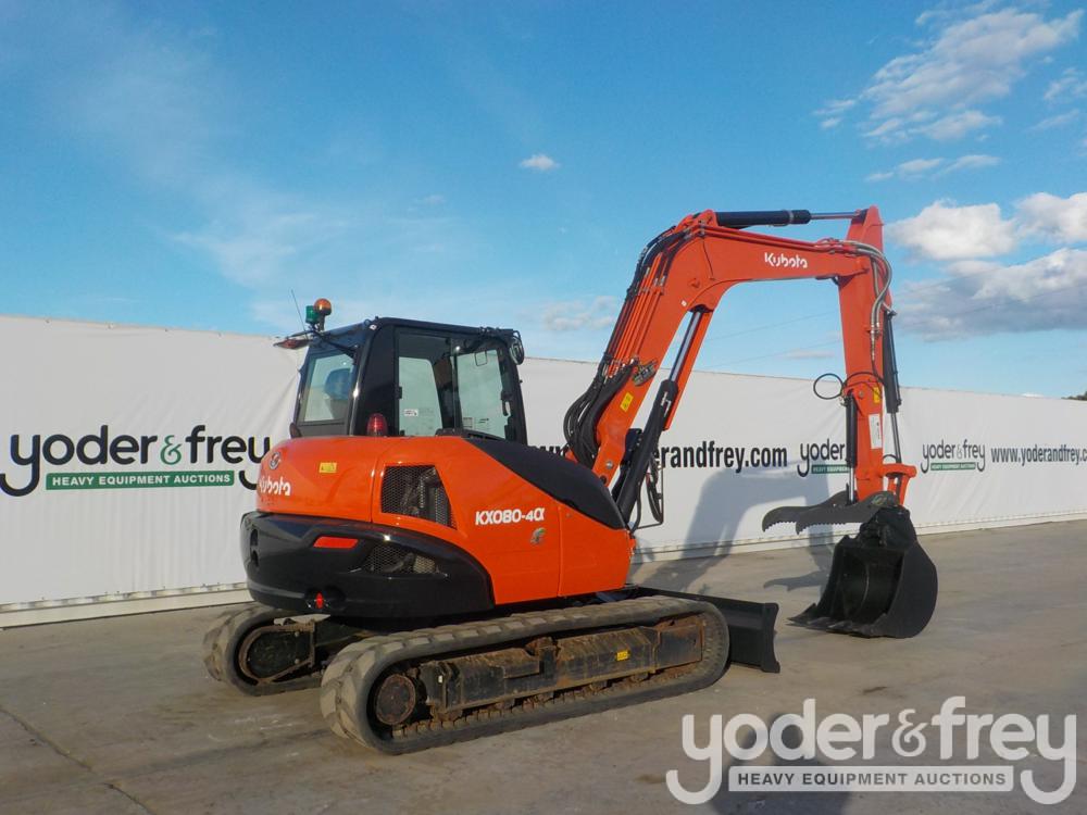 2018 Kubota KX080-4 Hydraulic Excavator, c/w Cab, A/C, Rubber Tracks, Blade, Offset, CV, QC, Piped, Aux Hydraulics, Hydraulic Thumb, Bucket - JKUK0804A01H45402