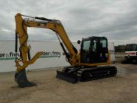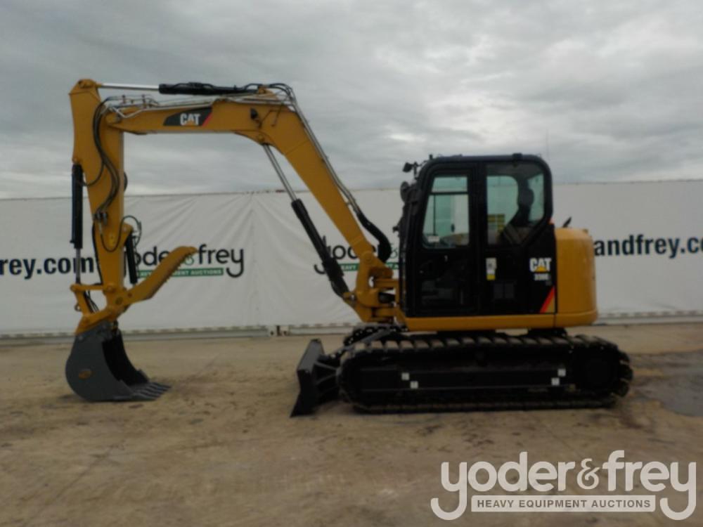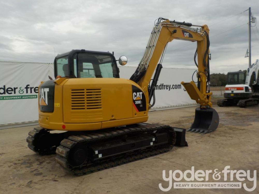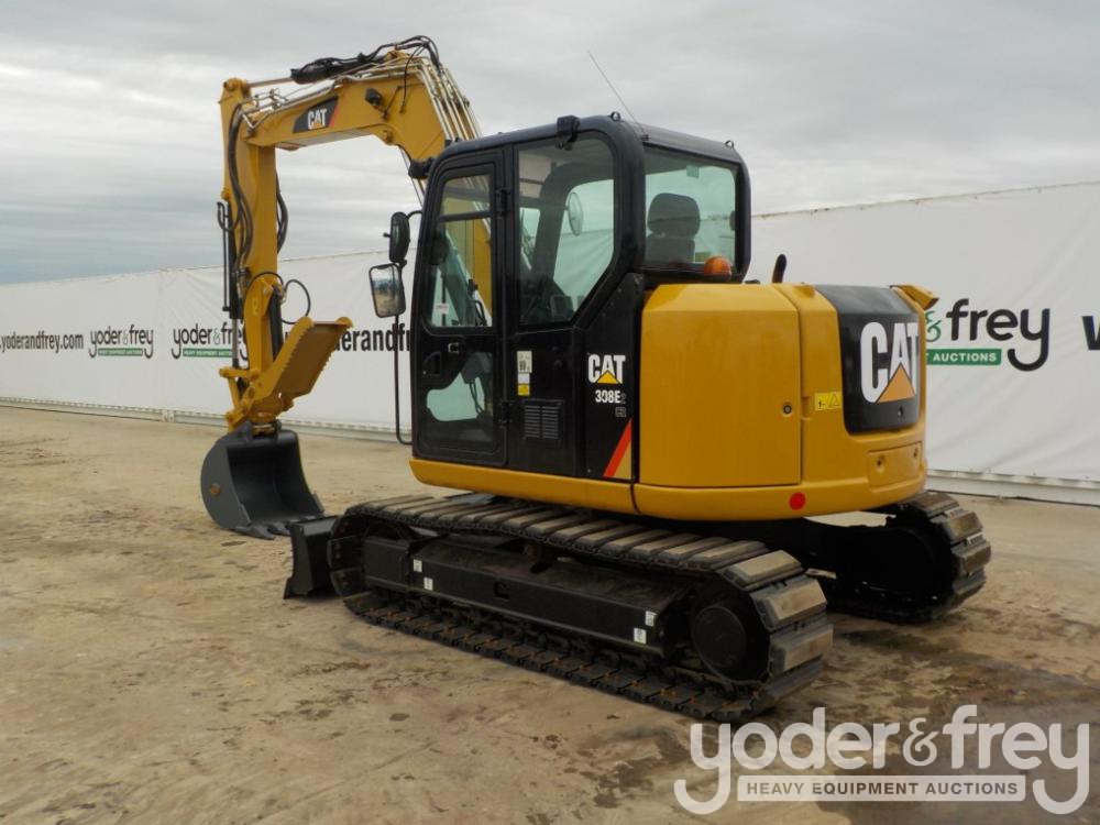 2017 Caterpillar 308E2CR Hydraulic Excavator, c/w Cab, A/C, 18"/450mm Rubber Block Pads, Blade, Offset, CV, QC, Piped, Aux. Hydraulics, Rear View Camera, Hydraulic Thumb, Bucket - CAT0308ELFJX08413