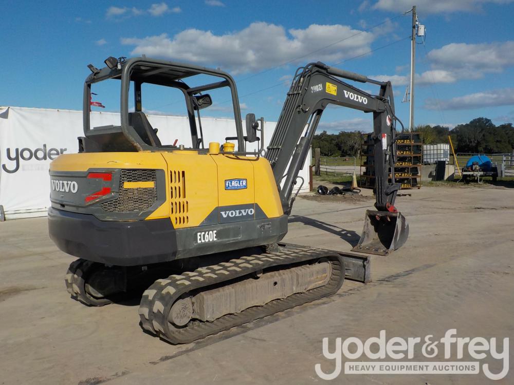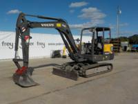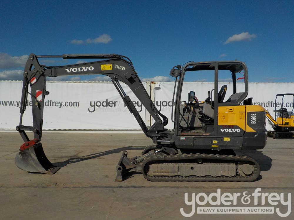 2016 Volvo EC60E Hydraulic Excavator, c/w Canopy, 16"/400mm Rubber Tracks, Backfill Blade, QC, 5' 3" Stick, Swing Boom, Aux Hydraulics, 23" Bucket - VCEEC60EP00311021