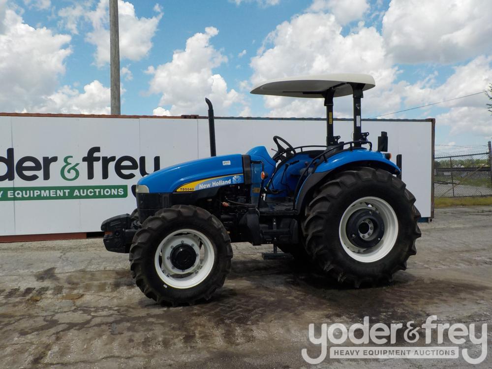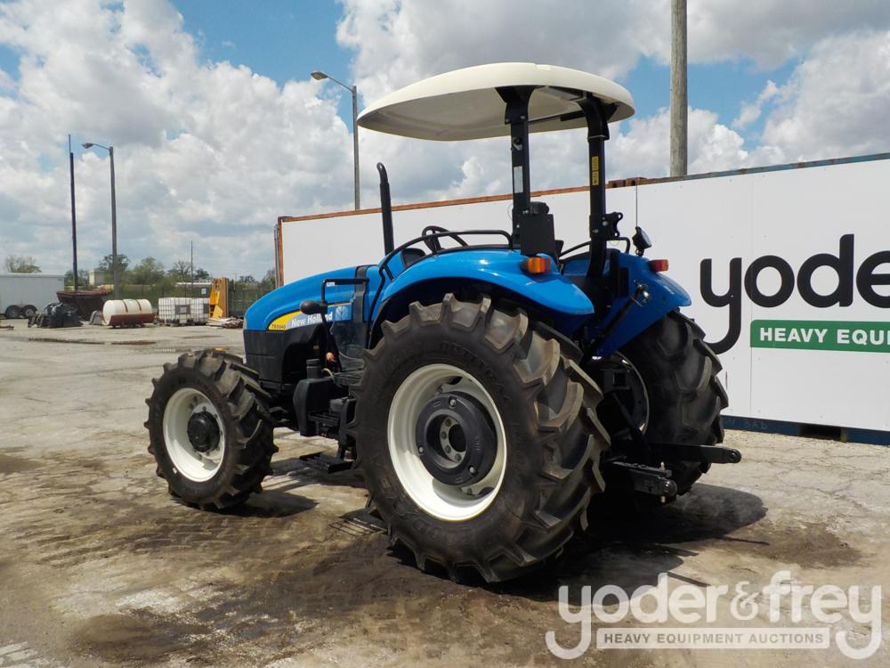 Unused New Holland T5040 4WD Tractor, 88HP, 12 Speed Synchro Shuttle, 320/85R24 w/Rear 440lb Wheel Weights, Folding ROPS, 705lb Front Weight Pack (39 Hours) - ZDJN00183