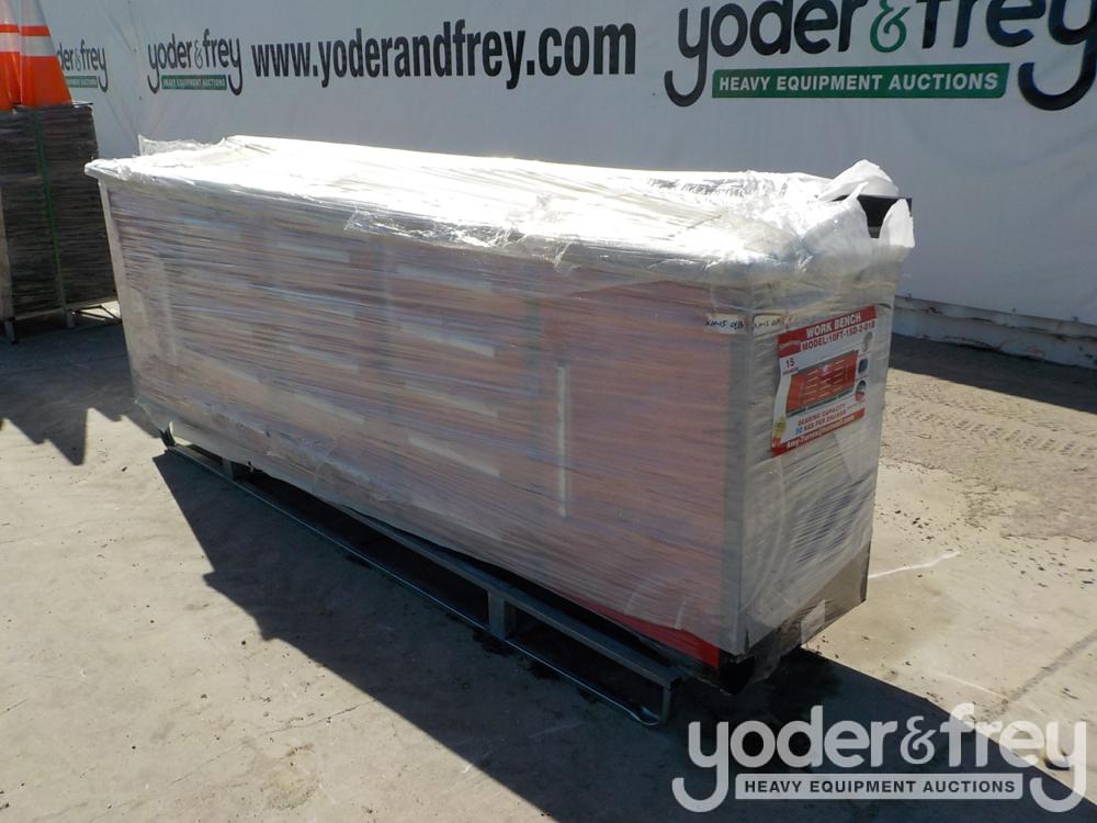 Unused Steelman 10' Work Bench c/w 15 Drawers & 2 Cabinets, 112" x 26" x 39", Drawer Locks, Anti-Slip Inners, 3 Rail Sliding (Red) - 1******2