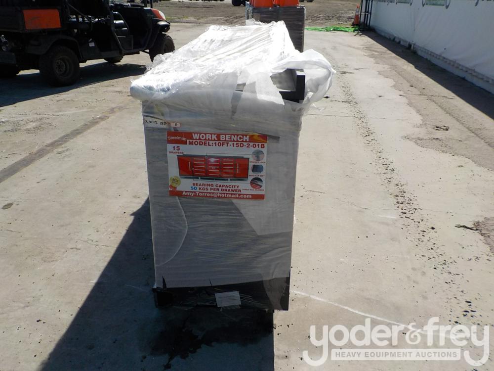 LOT # 0248 -- Unused Steelman 10' Work Bench c/w 15 Drawers & 2 Cabinets, 112" x 26" x 39", Drawer Locks, Anti-Slip Inners, 3 Rail Sliding (Red)