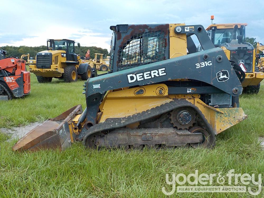 2018 John Deere 331G Tracked Skidsteer Loader c/w Cab, Joystick Controls, 18" Rubber Tracks, 83" Bucket, John Deere 4 Cylinder Diesel Engine (Track Issue) - 1***************8
