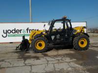 2011 Caterpillar TH337 Turbo Telehandler c/w Cab, Joystick Controls, QH, WLI, Forks, Rear View Camera, Crane Attachment, 24' Max Lift Height, 12' Max Forward Reach, 7,000lb Lift Capacity (1,783 Hours) - YC5000000TDF00342