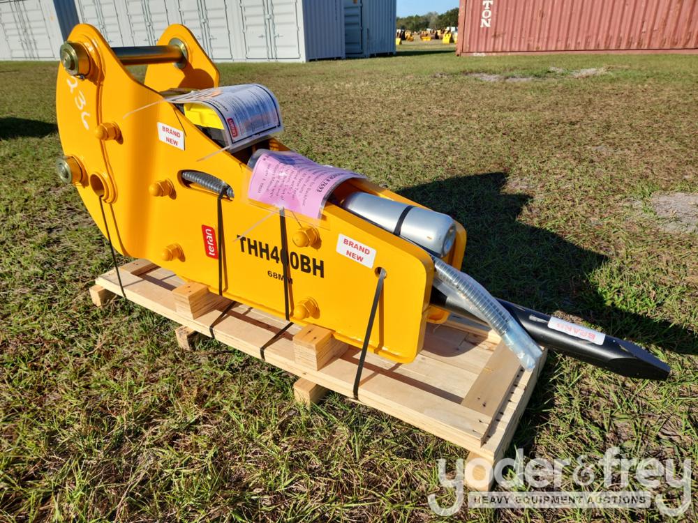 LOT # 0944 -- Unused Teran Hydraulic Breaker to suit Backhoe CAT 416/428/444 c/w 2 Chisels "Moil Point 'M' Type", 2 Hoses, 1 Set of N2 Nitrogen Charging Kit, N2 Bottle Pressure Gauge, 1 Spare Seal Kit, Maintenance Tools, Operations Manuel, Auto Lubrications Pre- Dispo