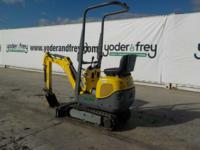 2015 Wacker Neuson 803 Mini Excavator c/w Roll Bar, 7" Rubber Tracks, Backfill Blade, Swing Boom, Aux Hydraulics, 12" Digging Bucket, Yanmar 3 Cylinder Diesel Engine (726 Hours) - WNCE0801JPAL00649