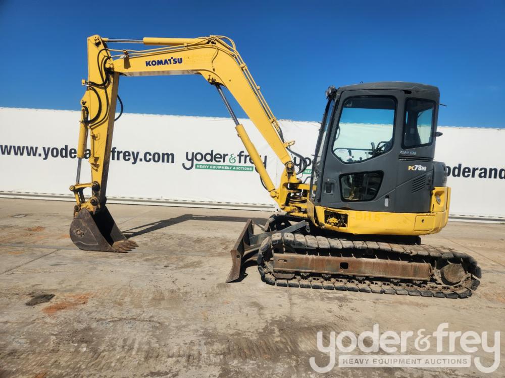 2008 Komatsu PC78MR-6 Hydraulic Excavator c/w Cab, A/C, 18" Rubber Block Pads, Backfill Blade, Swing Boom, Piped, 24" Digging Bucket, Komatsu 4 Cylinder Diesel Engine - KMTPC029K01004012