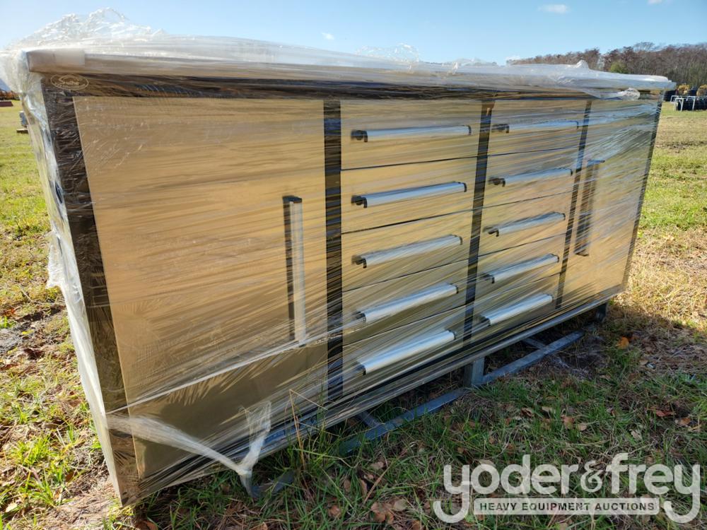 Unused 2022 Steelman 7' Work Bench c/w 10 Drawers, 2 Cabinets, Drawer Locks, Anti-Slip Inners, 3 Rail Sliding (Stainless Steel) - 16051-02-23-25