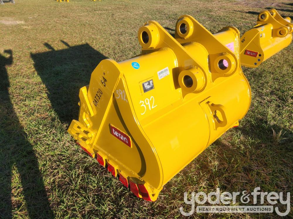 LOT # 1831 -- Unused Teran 54" HD Bucket c/w Side Cutters, Side Protectors, Heel Shrouds, Lip Protectors, Reinforcement Plates, 6HD Tips "B" Linkage, 80mm Pins to suit CAT 320, 319D, 320D, 320E, 321D, 323E, 323F, 325F