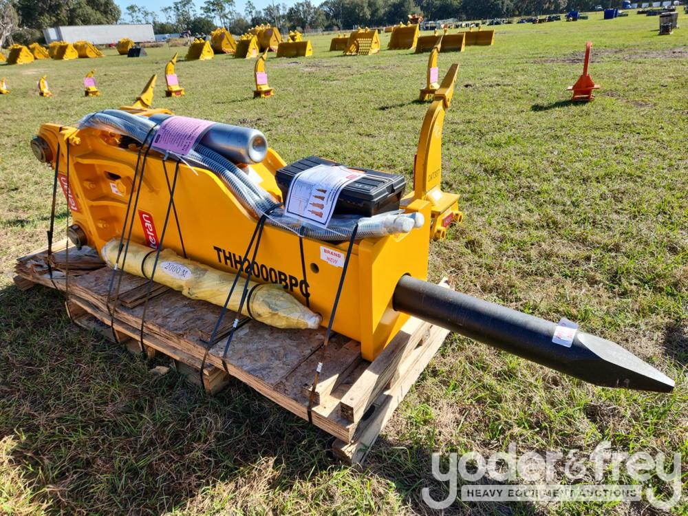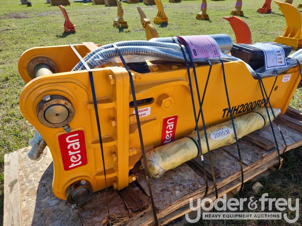 Unused Teran Hydraulic Breaker for CAT 320 "B" Linkage, ALL 18-25 Ton Excavators, 332MM FS c/w Auto-Lube Pre-Disposition Box Type, Komatsu PC200/220, 80mm 12.9"(330mm) Face Spread, 18"(450mm) Front Pin to Back c/w 2 Chisels 'M' Type", 2 Hoses, Nitrogen Charging - 7693-370