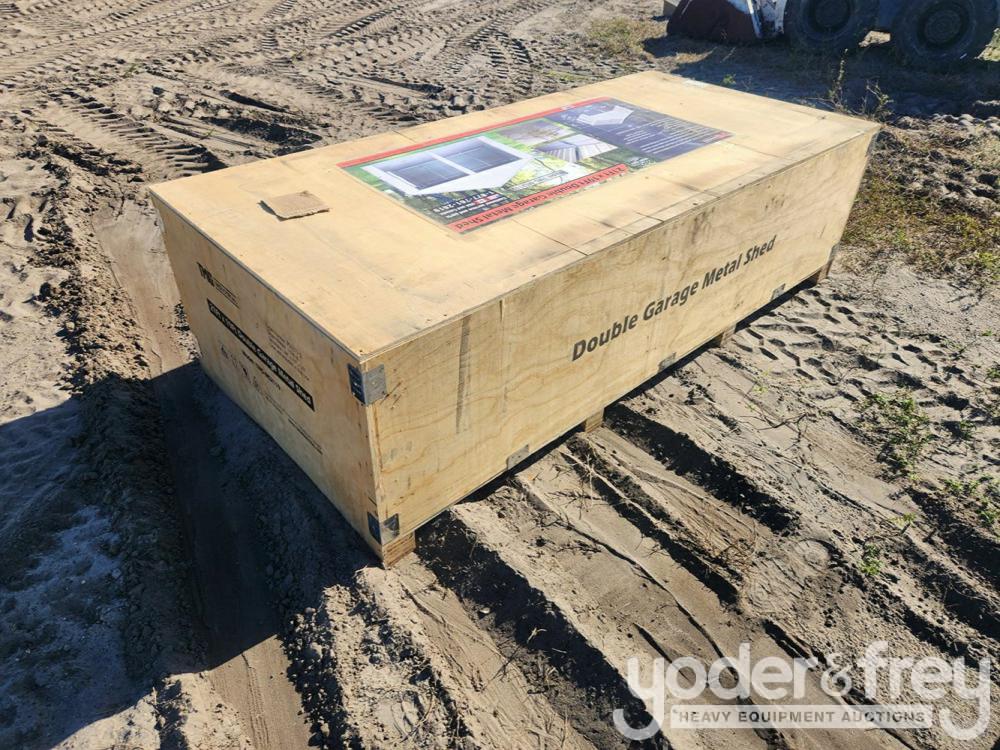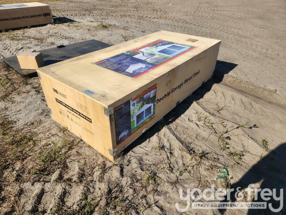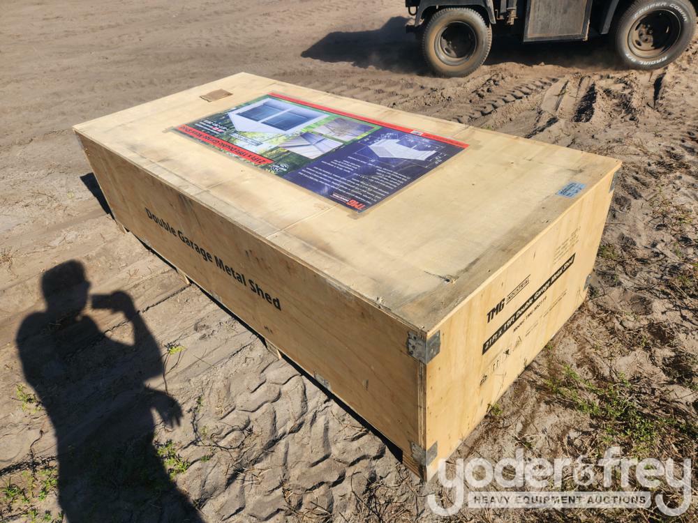 Unused Tmg Industrial MS2119 21’ x 19’ Double Garage Metal Shed with Side Entry Door, 400 Sq-Ft, 8' Eave Height, 27 GA Corrugated Panels - 7014-64