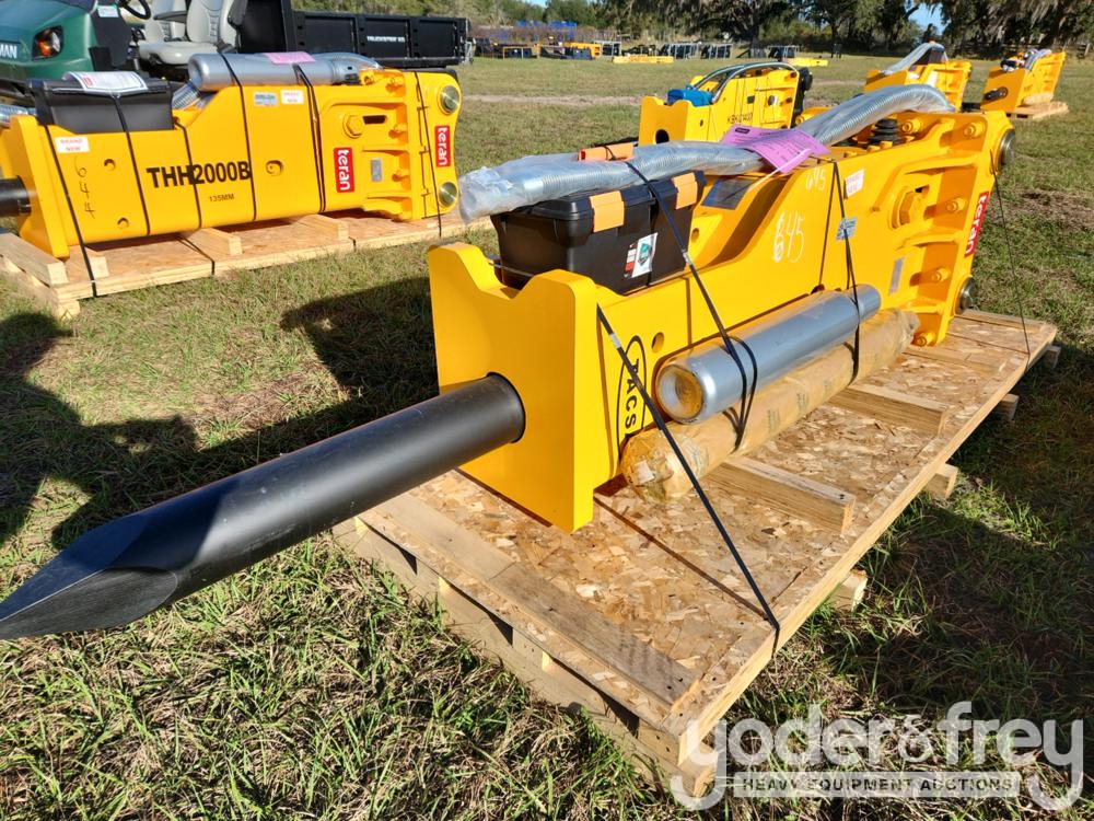 LOT # 2085 -- Unused Teran Hydraulic Breaker to suit CAT 320 "B" Linkage, All 18-25 Ton Excavators, 2 Chisels "Moil Point 'M' Type", 2 Hoses, 1 Set of N2 Nitrogen Charging Kit, N2 Bottle, Pressure Gauge, 1 Spare Seal Kit, Maintenance Tools, Manuel, Auto Lube Pre-Disposition