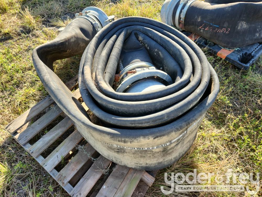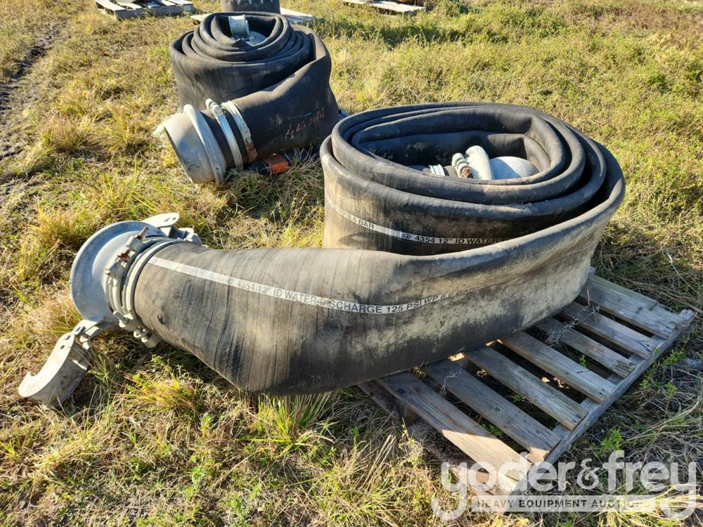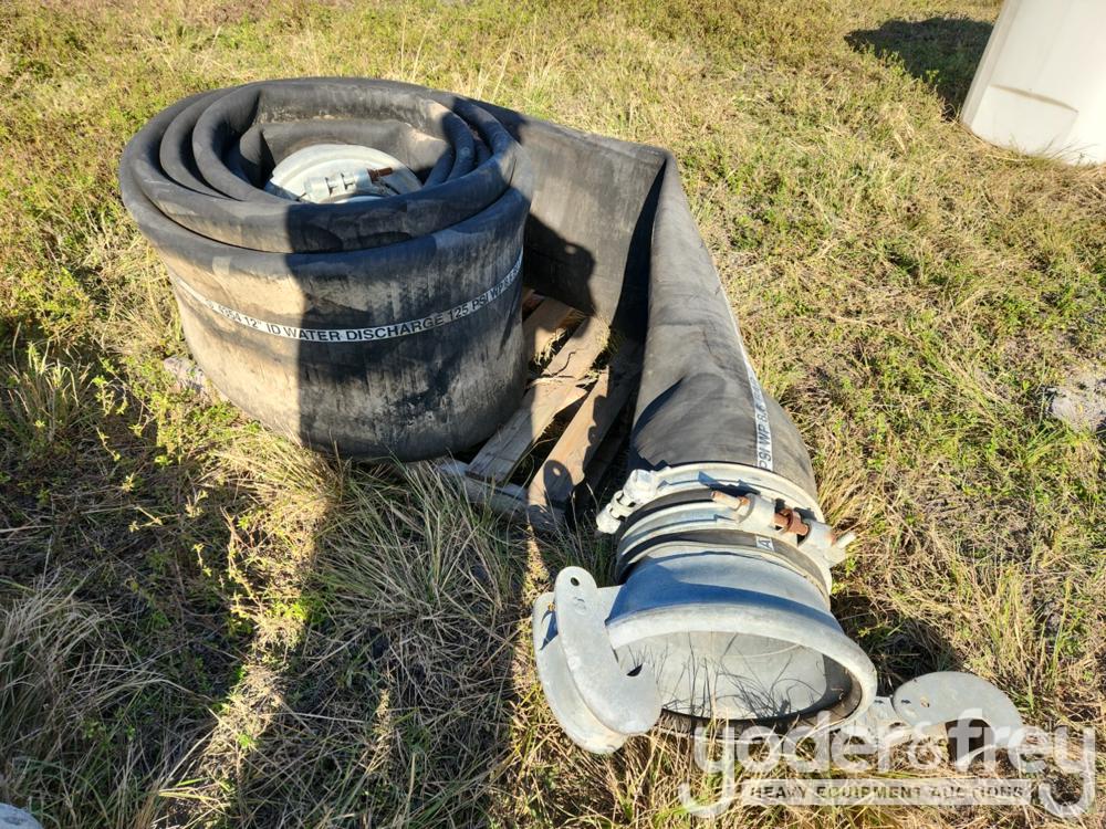 LOT # 1762 -- 12" Water Discharge Hose 125 PSI WP 8.6 Bar 15-20ft c/w Hookup Clamps