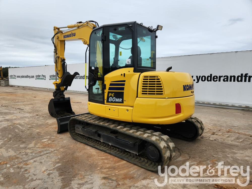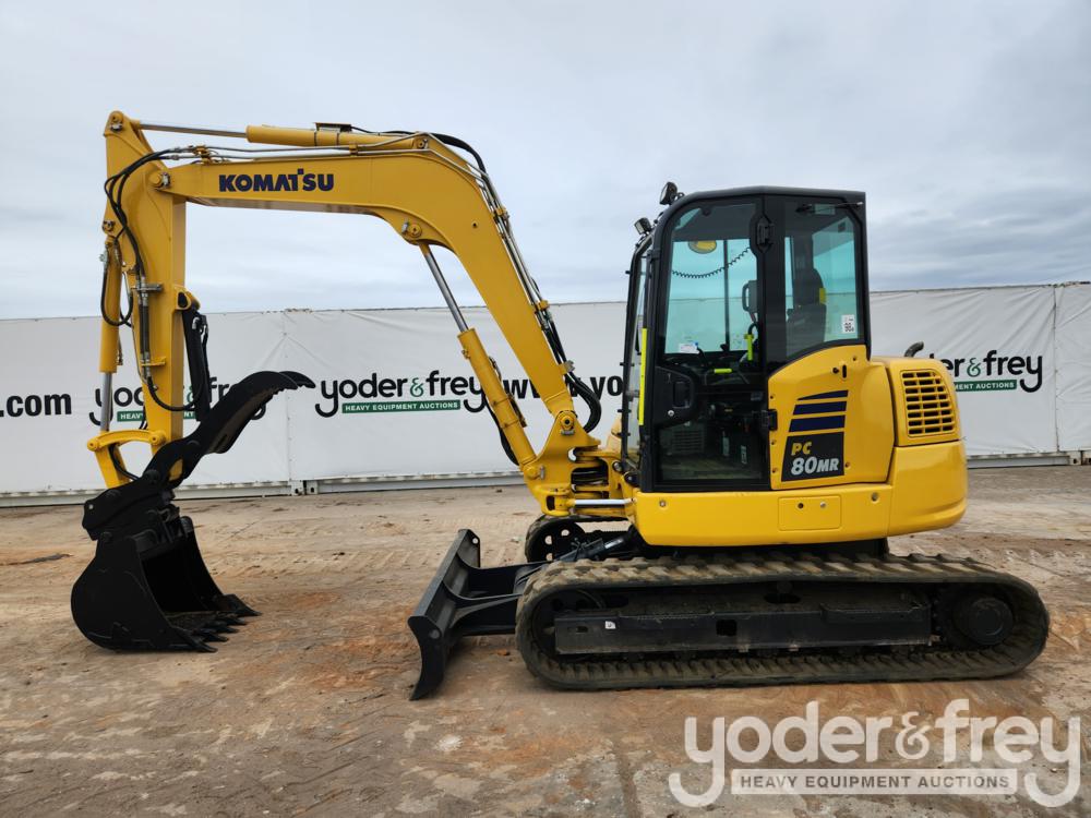 2020 Komatsu PC80MR-5E0 Hydraulic Excavator c/w Cab, A/C, 18" Rubber Tracks, Backfill Blade, Swing Boom, CV, QH, Piped, Aux. Piping, Hydraulic Thumb, 30" Bucket, Komatsu 4 Cylinder Diesel Engine (1,638 Hours) - K***************1