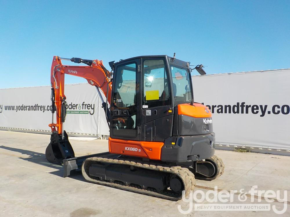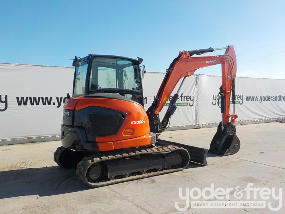 2020 Kubota KX060-5 Excavator c/w Cab, A/C, 16" Rubber Tracks, Backfill Blade, Swing Boom, CV, QH, Aux Hydraulics, Hyd Thumb, 24" Bucket (822 Hours) - K***************7