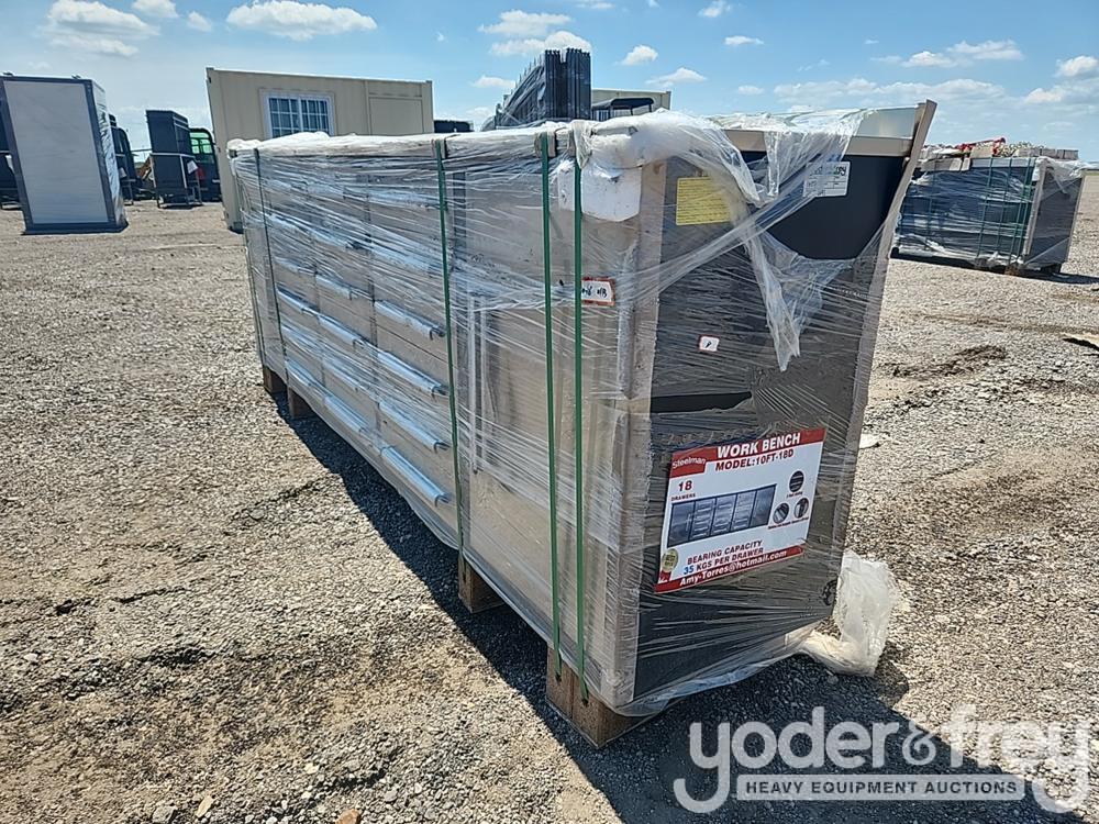 Unused Steelman 10' Work Bench c/w 18 Drawers, 2 Cabinets, Drawer Locks, Anti-Slip Inners, 3 Rail Sliding (Stainless Steel) - 1********3