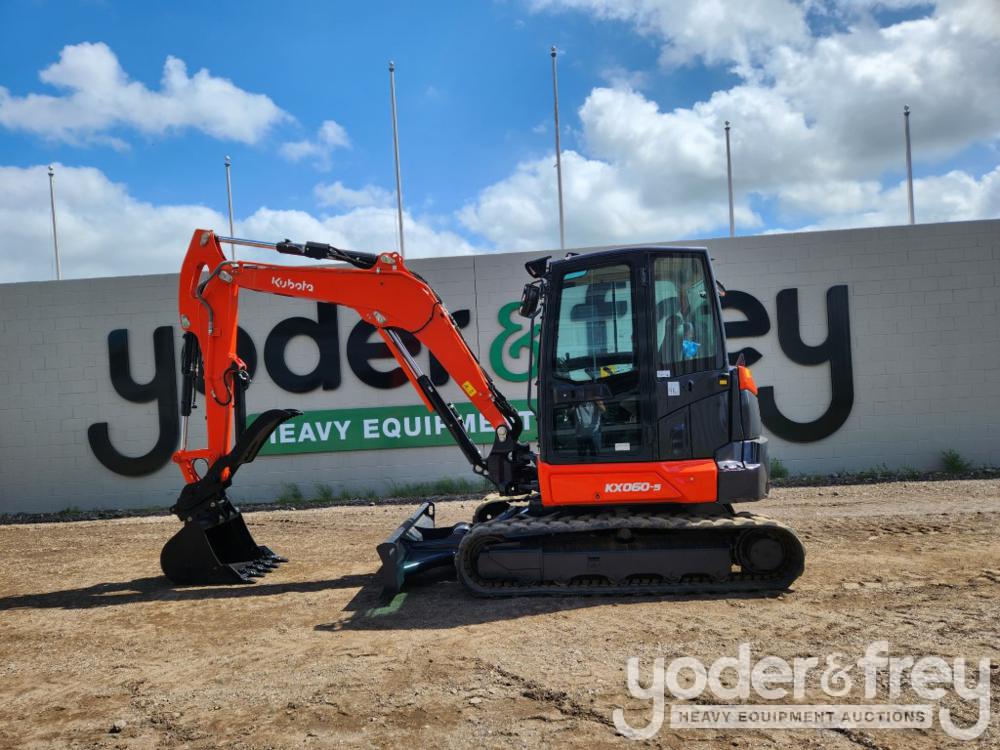 2021 Kubota KX060-5 Excavator c/w Cab, Rubber Tracks, Blade, Offset, CV, QH, Piped, Aux Hydraulics, 30" Bucket, Hydraulic Thumb, A/C (1,027 Hours) - K***************6