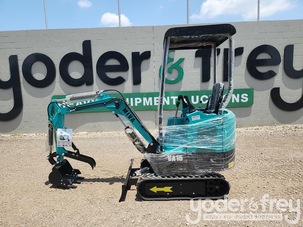 Unused 2023 Miva VA15 Mini Excavator c/w OROPS, Rubber Tracks, 16" Digging Bucket, Piped, Backfill Blade, Manual Thumb, Briggs & Stratton Engine (1 Hours) - V******9