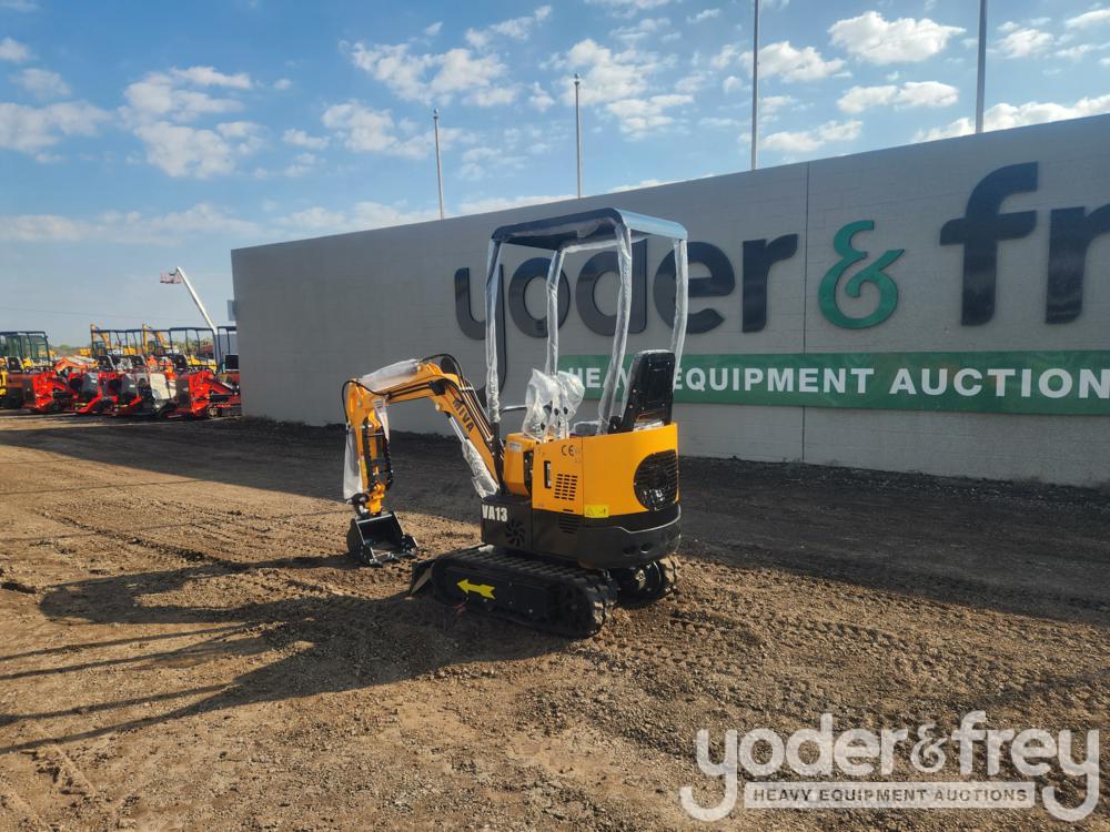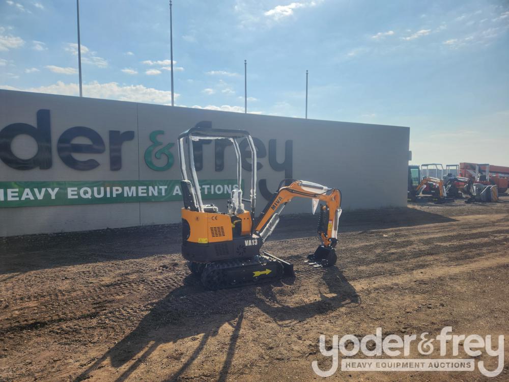 Unused Miva VA13C Rubber Tracks, 16" Digging Bucket, Hydraulic Plumbing, Blade, Manual Thumb - 17887-0077