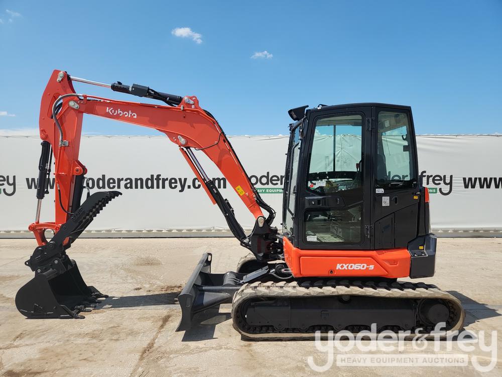 2021 Kubota KX060-5 Hydraulic Excavator c/w Cab, Rubber Tracks, Backfill Blade, Swing Boom, CV, QH, Piped, Hydraulic Thumb, Bucket (918 Hours) - K***************3