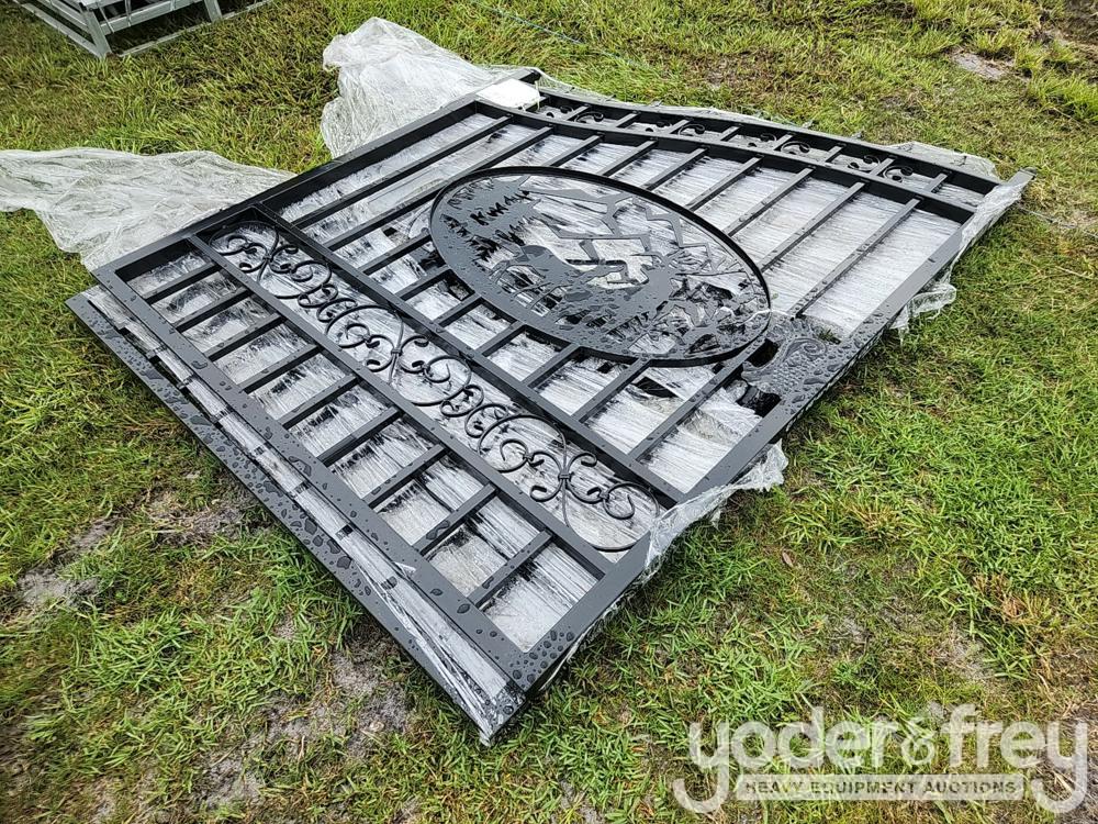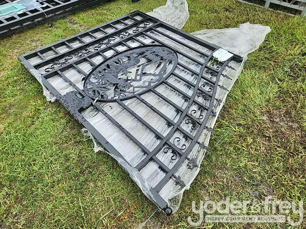 LOT # 0451 -- Unused 12' Wrought Iron Gate c/w Artwork "Deer"