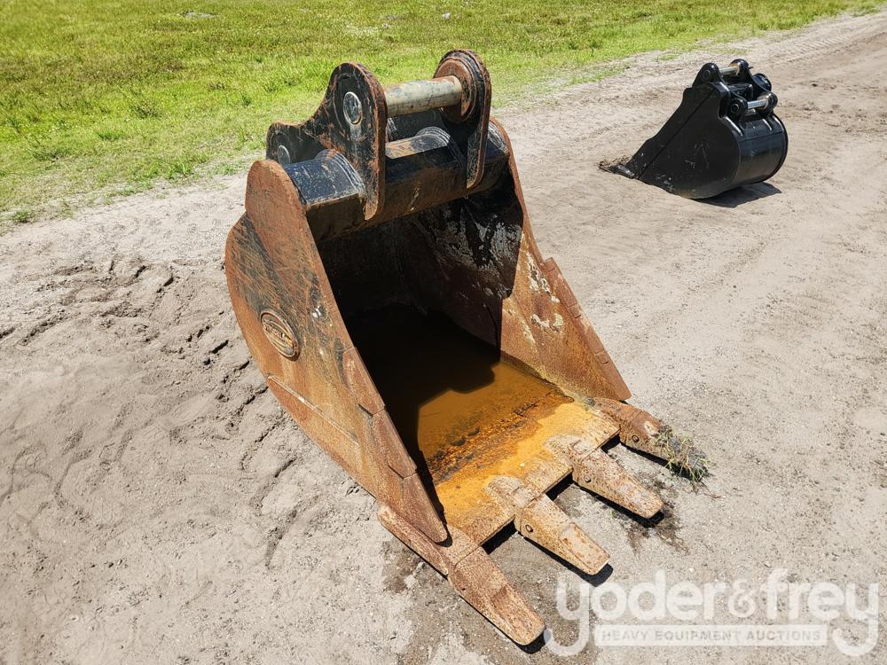 LOT # 0215 -- Strickland 34"/860mm Bucket, 3"/80mm Pin Diameter, Centre to Centre 18"/450mm, Teeth