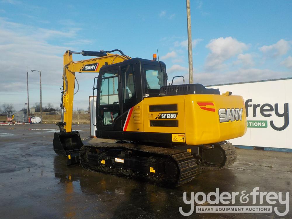 Unused Sany SY135C Excavator c/w 24" Pads, 41" Bucket, Blade, Aux Hydraulics, Rear View Camera, A/C (Ex Demo Machine) (9 Hours)
