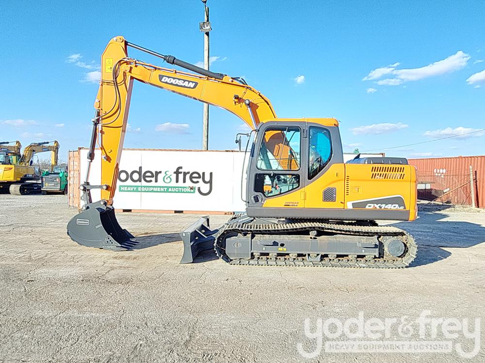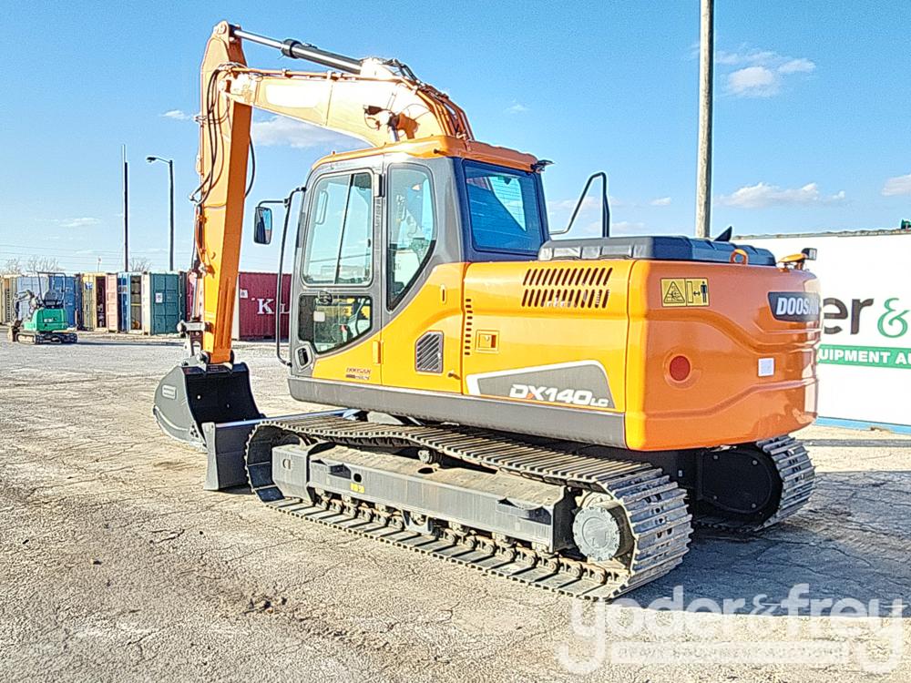 Doosan DX140LC Excavator, A/C, 24" Pads, Blade, CV, Aux Hydraulics, Bucket, Rear View Camera (20 Hours)